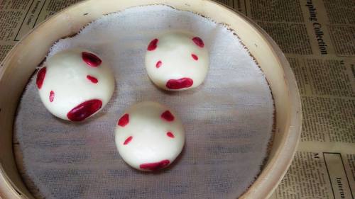 这次做了款小猪,可爱极了胖的眼睛都眯成缝了。圆圆的脸蛋胖胖的身体。大人小孩都喜欢馒头小猪。馒头吃了好营养丰富又管饱。