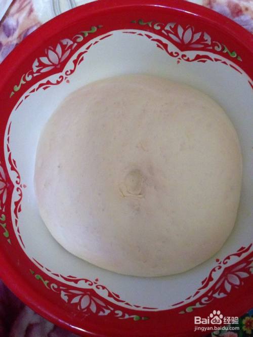 3碗面粉,加入1小包酵母粉,加温水揉成面团。待面团发酵至2倍大备用。