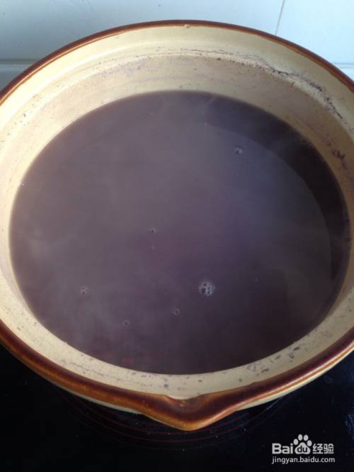 浸泡12小时以上的红豆倒入砂锅,并加入适量清水,煮开后,加盖小火煮10分钟,然后关火焖30分钟,焖完后红豆自动开花。