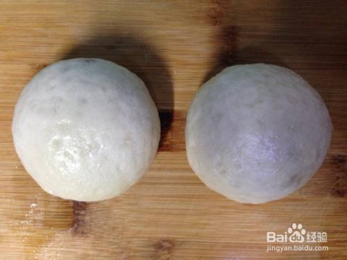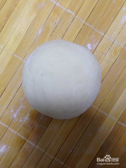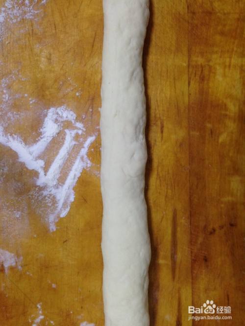 面板略施薄粉将面团揉至原大小,然后搓成条状。