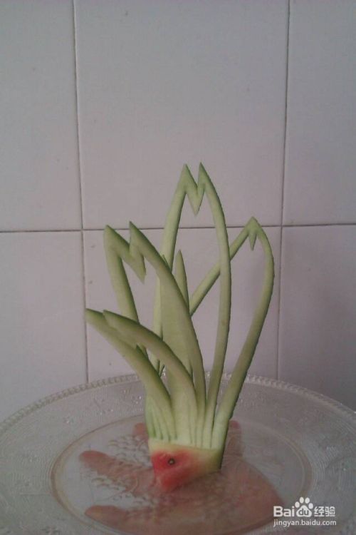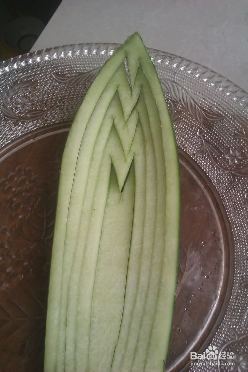 5从外到里划出多个M字造型,然后把瓜皮浸泡水里5到10分钟。