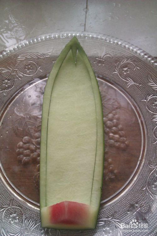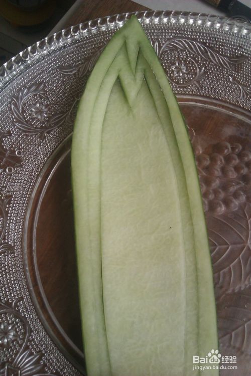 2把白色的瓜皮切除,让瓜皮变薄一些好做造型。