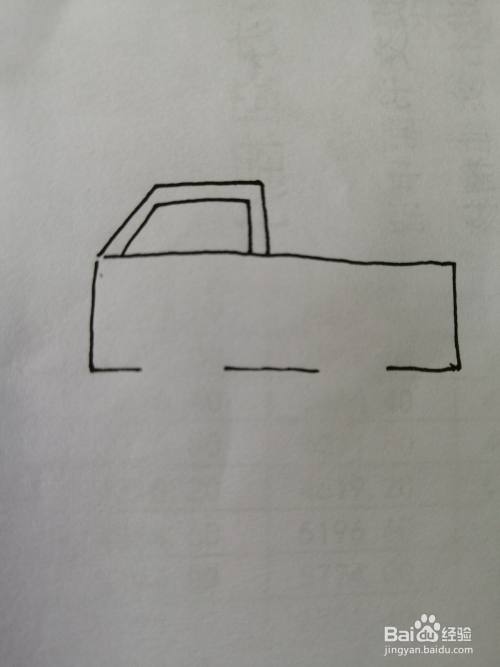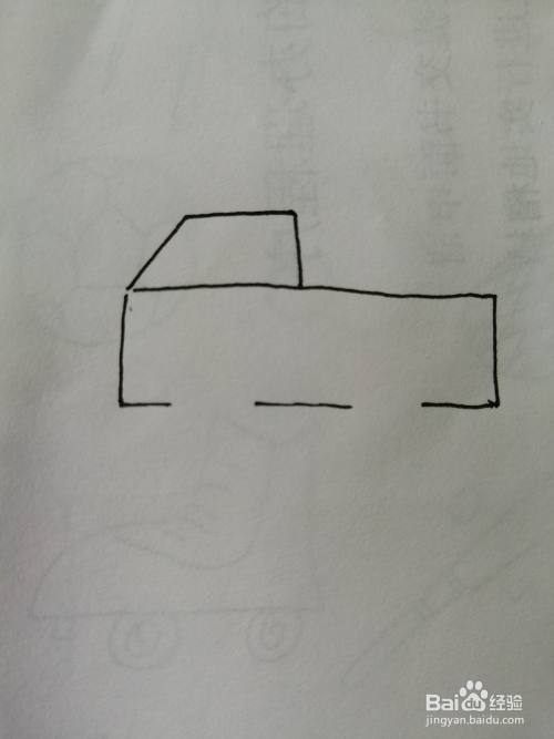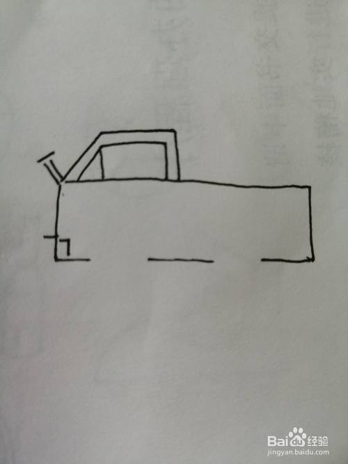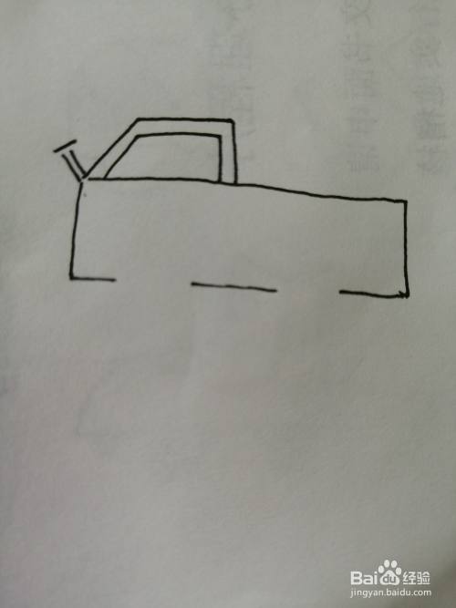 第二步,接着在长方形的左边上面画出小货车的车头,车头画法比较简单。