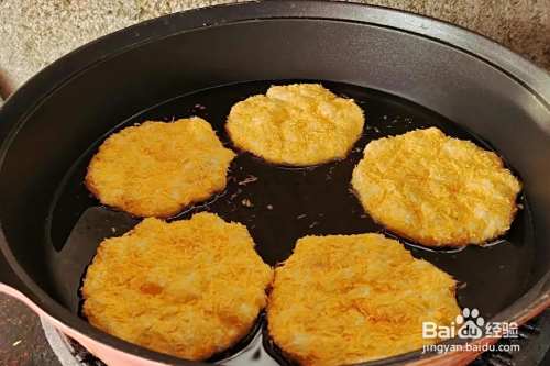 平底锅来上一些油,把做好的饼胚放进去,要留一点空隙,防止小饼粘连,开中小火加热