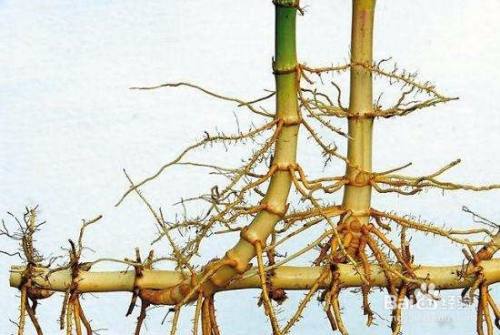 二、竹鞭节的侧面生着芽,有的发育成笋,有的发育为新鞭。