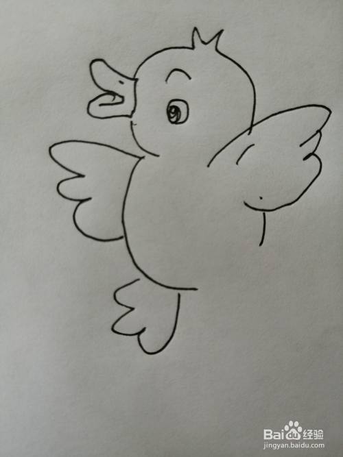 第七步,最后把可爱的小鸭子的另外一只翅膀和两只脚画出来。可爱的小鸭子就画好了。