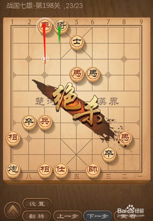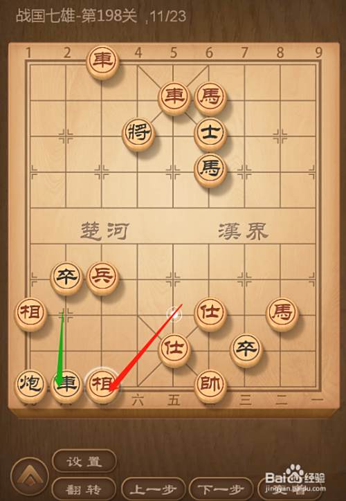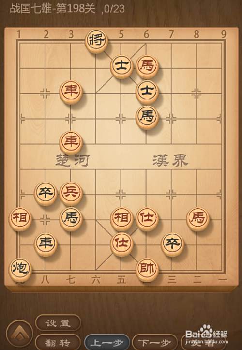 QQ象棋战国七雄第198关通关共需23步,黑方车马炮兵已经形成杀招,把红帅团团围住,从整体情况来看,红方没有多大反击的机会,唯一的办法就是率先发起攻击,不给黑方机会。所以怎么才能先发制人,就是这一关的重点。
