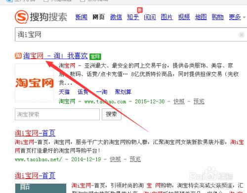 打开浏览器,在搜索框中搜索淘宝,浏览搜索结果,找到官方网站,点击进入(如下图)
