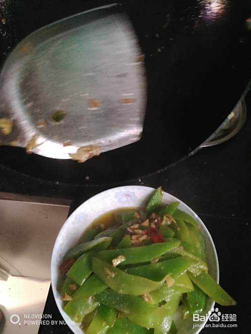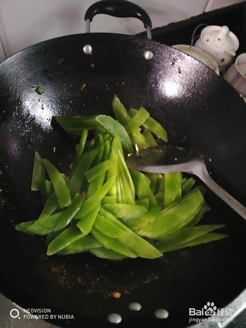 第四步,等蒜和红辣椒炒香以后倒入切好的莴笋片。