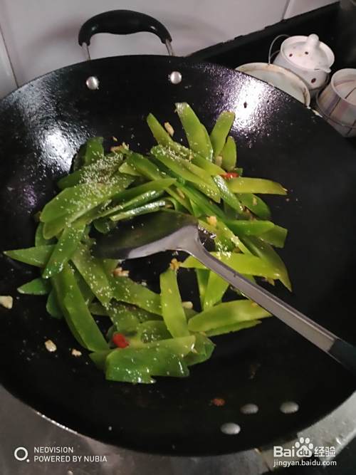 第五步,在锅中翻炒一会,然后加入一点鸡精。