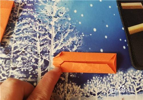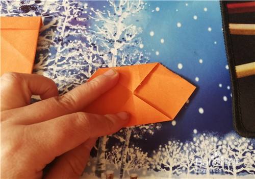 继续把上下边向内折,如图一。把左右两侧的角向内折,如图二。再把左侧的上下角向内折,如图三。