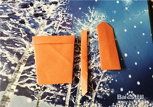 首先把彩纸用裁纸刀裁成三份,如图一。先把长的彩纸上侧的边向下折,如图二。