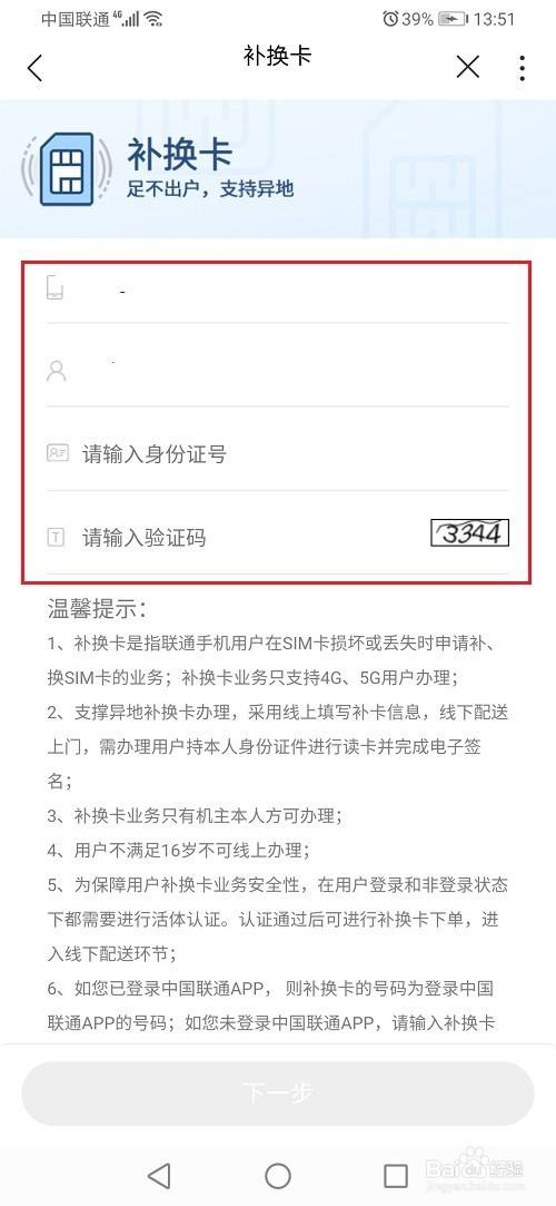 第五步进去之后,填写信息,可以进行补办卡,根据需要使用
