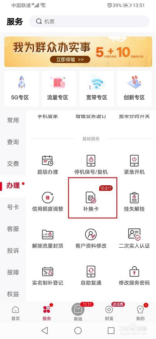 使用中国联通app的时候,想知道怎么补办卡,下面来介绍一下方法