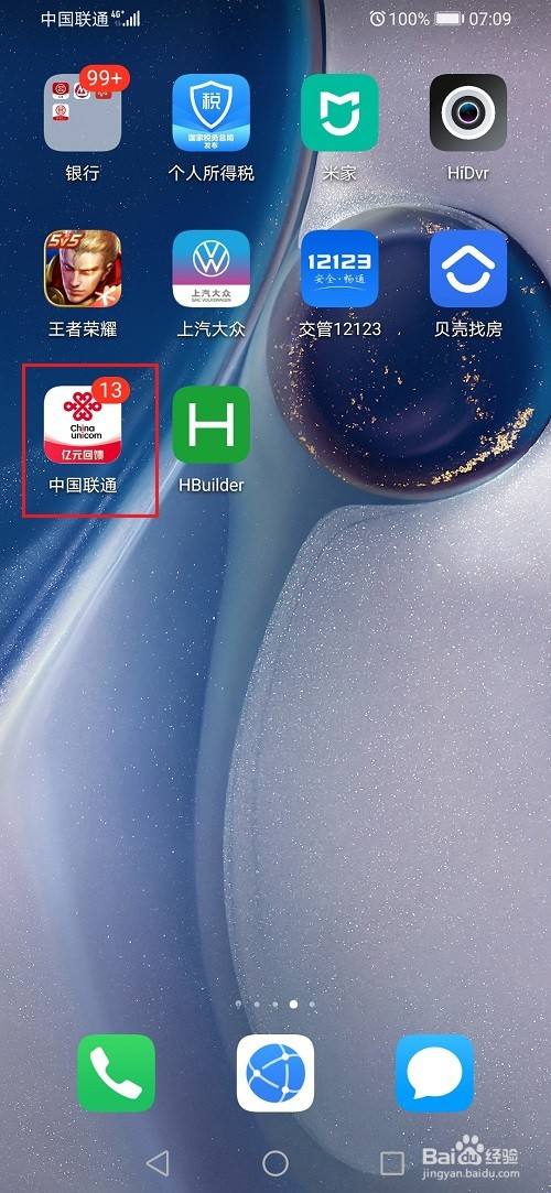 第一步打开手机,然后点击中国联通