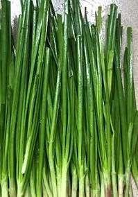 步骤:将韭菜用草绳捆好,根部向下放入陶瓷盆中,令盆内的清水浸泡韭菜的根部以及近茎部即可,韭菜可保持两三天左右,不变质。