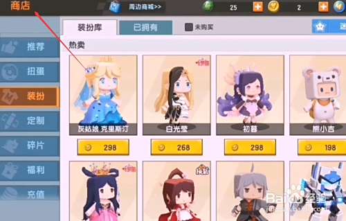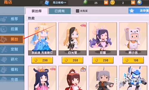 点击上方的装扮库选项。