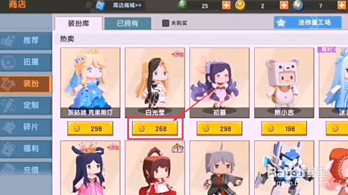 花费268迷你币即可购买获得白光莹装扮。