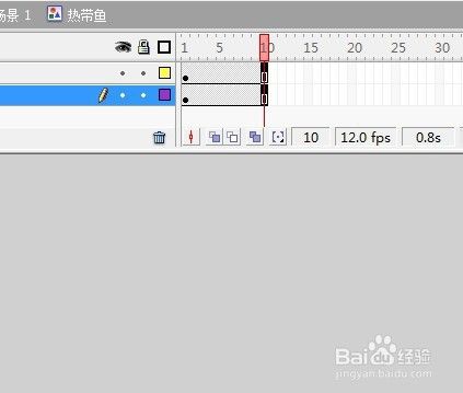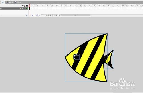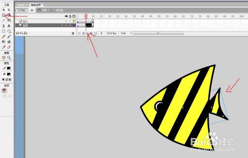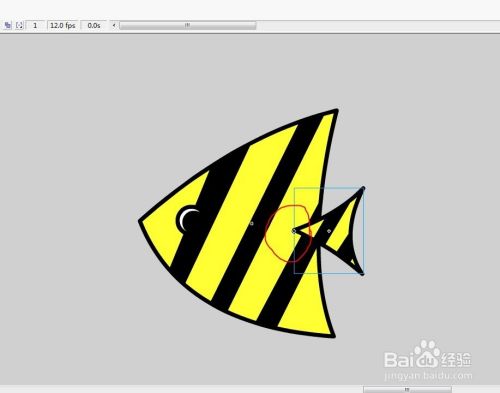 再在中间插入一个关键帧,把鱼尾的位置用任意变形工具调整到一侧