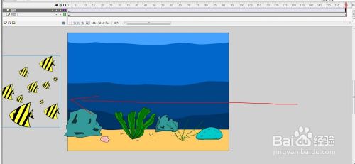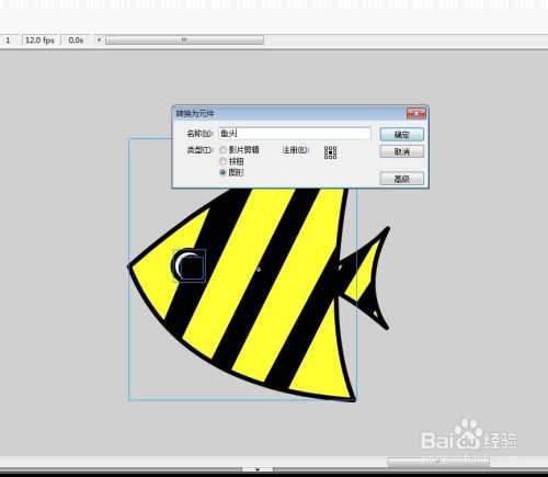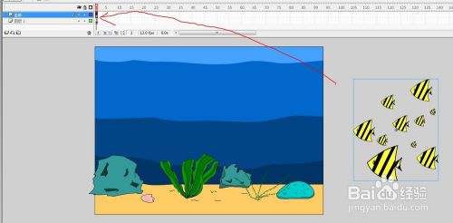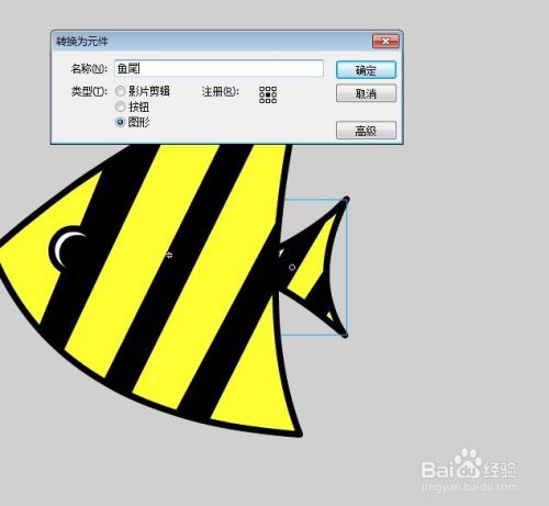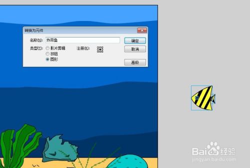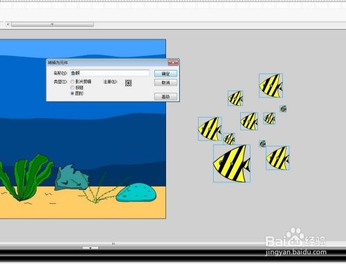 然后选中所有鱼,右击生成元件,命名为鱼群