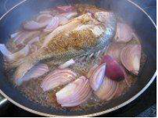 把腌好的鱼均匀的摊在洋葱的上面,之后倒入高汤或者是啤酒,大火烧开,转中火炖10分钟。