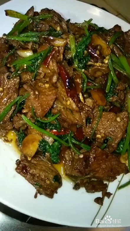 首先准备牛肉,将牛肉切片备用,起锅烧油,下入牛肉炒香,将牛肉大火炒至变色。