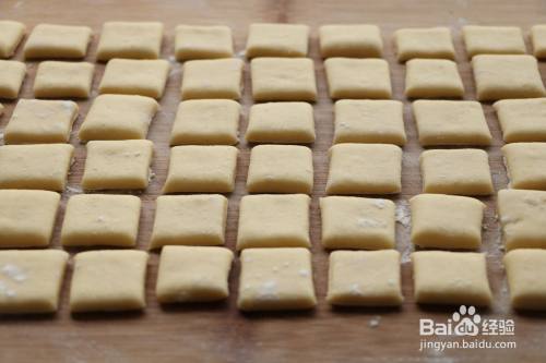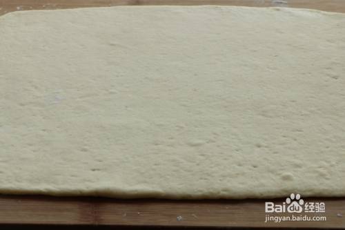 5、然后把面团擀成大约0.5厘米厚的薄饼,擀的时候多撒点干粉;