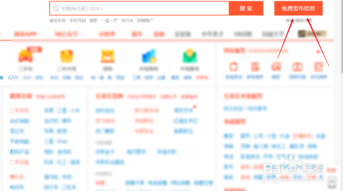 打开58同城网页端,登录后点击右上角免费发布信息。