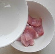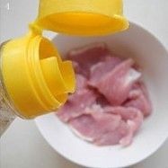 在揉搓好的肉片中,加入适量油,搅匀肉片,使肉片不粘不卷