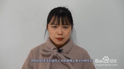 将蒸锅洗干净,把包好的羊毛衫放在上方的蒸格上蒸十分钟左右。