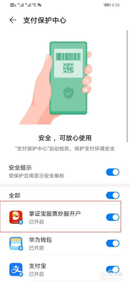 华为手机如何关闭掌证宝股票炒股开户支付保护中心