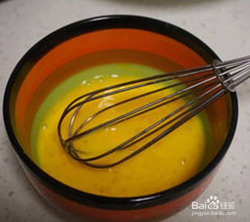 碗中打入两个鸡蛋打散,倒入打成泥状的山药