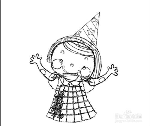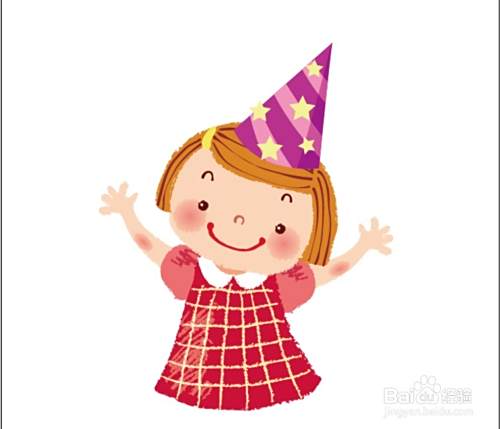 小女孩在快乐的时候非常可爱,我们要绘制的小女孩正在庆祝自己的生日,她的动作就是张开自己的手臂,戴着一顶可爱的生日帽子,给了人们满满的幸福感觉。