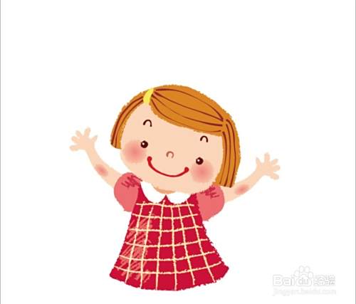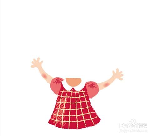 用暗红色填充小女孩的裙子,用淡红色填充小女孩的袖子,用淡粉色填充小女孩的手臂,用粉色的渐变填充手臂上面的暗区。用白色填充衣领。