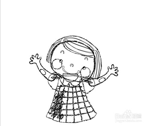 继续画出小女孩的双手的动作,还有她美丽的小裙子路径。