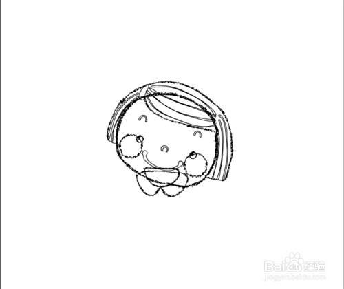 先画出小女孩的基本表情元素,它的短发路径,它的表情路径,眼晴、眉毛、鼻子、嘴巴,脸上的红晕等元素,头发上的小小的发卡。