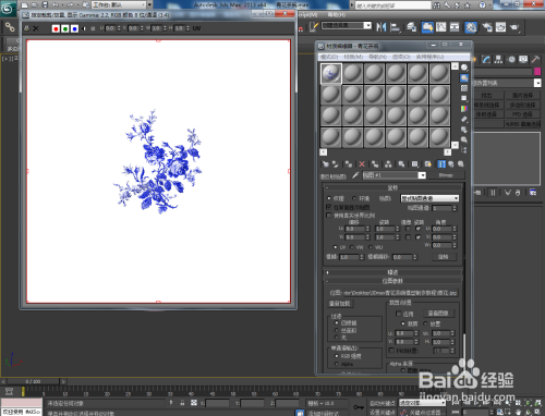 点击【材质编辑器】,新建一个名为:青花茶碗的材质球并按图示设置好漫反射、反射、折射的各个参数。点击图示【漫反射】右边的小方框-【位图】-【确定】,按图示选择一张我们找好的青花图案贴图并将其打开;