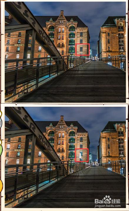 上图窗户里没有灯光,下图有