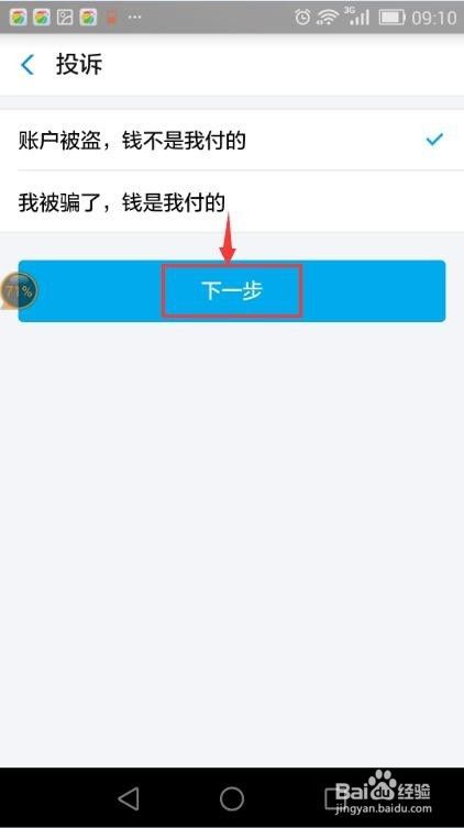 进入投诉页面后,点帐户被盗,钱不是我付的;