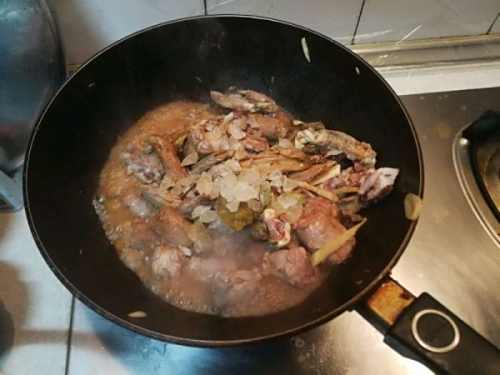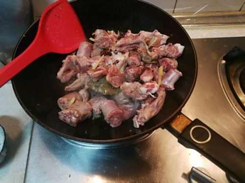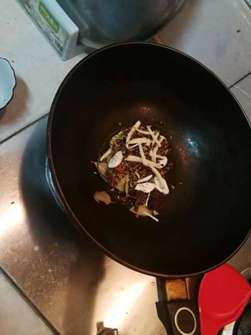 2锅里放油烧热,倒进香料翻炒,炒出香味