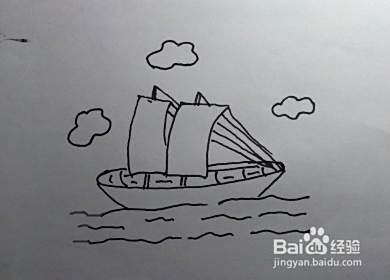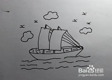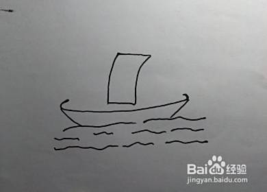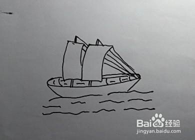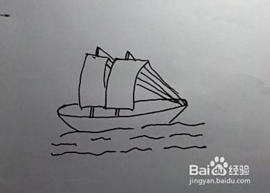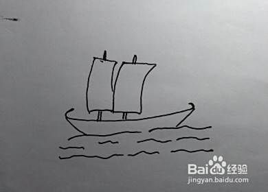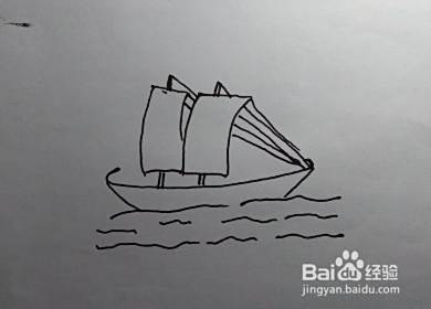 亲爱的小伙伴:小编现在来教你画一艘帆船,好不好呀?