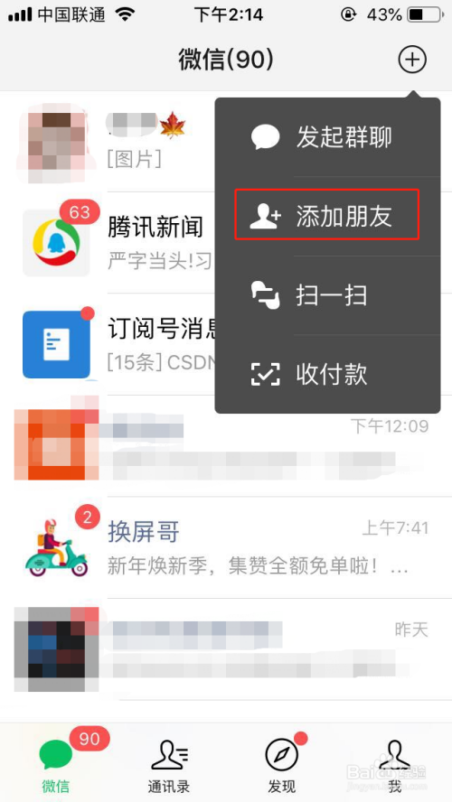 大家都听过recover功能,如果我们不小心删除了重要的信息后,也可以通过recover进行恢复。打开微信,点击上面的加号,接着选择里面的添加朋友的这一项功能。