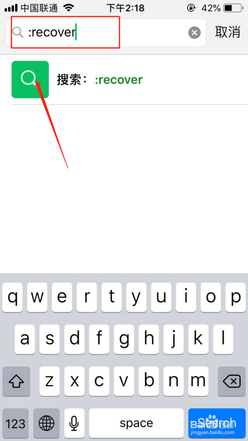 之后在里面输入:recover,注意了,前面的:号也一同输入,然后点击搜索按钮,一般情况下,手机会自动跳转至帮障修复的界面。