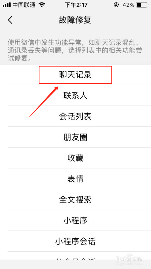 在故障修复的页面,我们会看到有多种选项,其中的微信记录这个选项,就是我们要恢复的数据了,点击进入下一步。