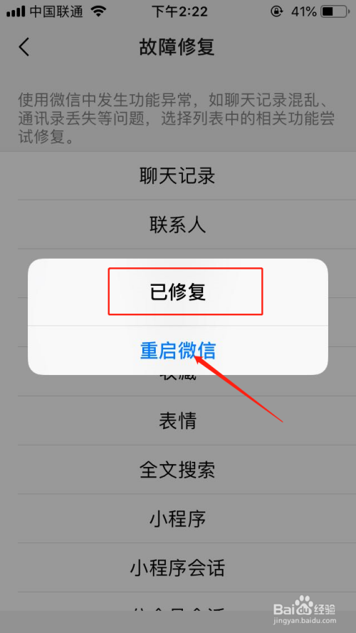 这时,微信会帮我们自动进行恢复,待修复完成,我们重新启动微信,删除的微信记录便恢复了。