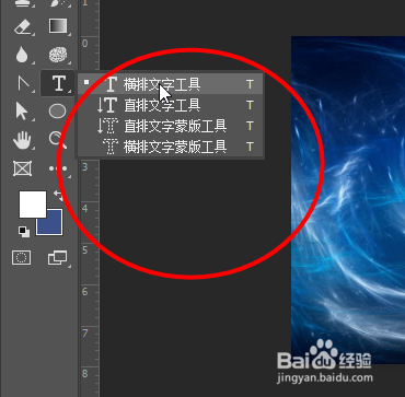 首先打开一张背景图层,然后选择工具栏中的横排文字工具
