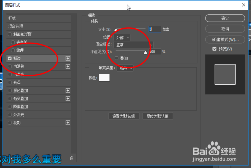 然后勾选描边,调整描边的像素大小和颜色,点击确定