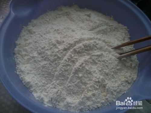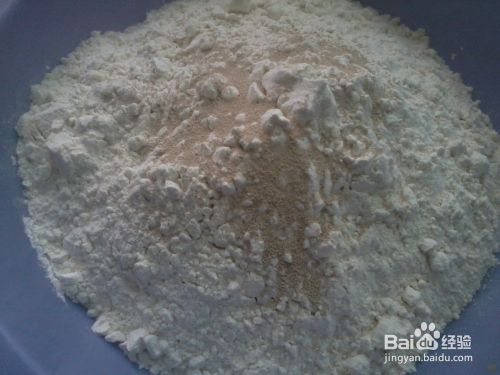 将面粉倒入盆中,再加入干酵母,拌匀。