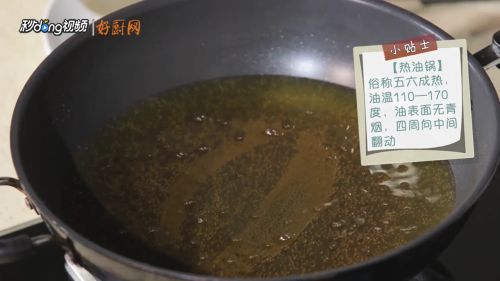 4油锅烧至六成热。