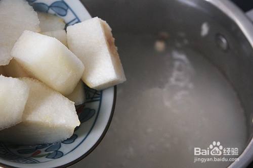 粥锅内加清水,用大火煮开,加入川贝及大米转小火煮开后继续煮40分钟。